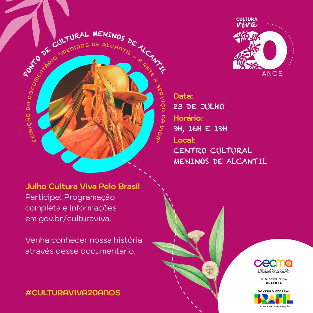 Casa da Cultura e CECMA Avenida São José, 2695, AlcantilO Ministério da Cultura (MinC) inicia a campanha “Julho Cultura Viva pelo Brasil”, com o mote “Celebre os 20 anos da Cultura Viva com o que você faz”. É um chamado para que os pontos de cultura promovam atividades comemorativas às duas décadas da Cultura Viva e compartilhem suas programações para compor o calendário nacional […]
